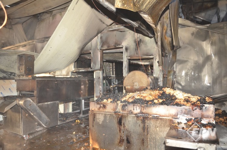공장 입구는 화염의 전파나 그을린 형태가 없었고 완제품을 포장한 제과 상자가 쌓여 있었다. 천막조 끝 지점 샌드위치 패널 건물에서 일부 탄화흔적이 관찰됐다.