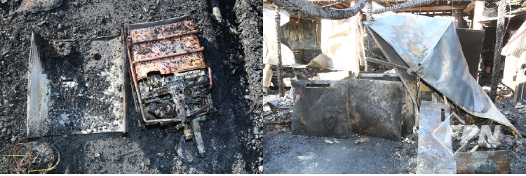 내부에서 연소기구와 순간온수기, 온장고 등이 발굴됐으나 사용하지 않은 것으로 확인됐다. 커피포트는 콘센트 연결을 확인할 수 없는 상황이었으나 플러그가 전기적 이상에 의해 용융된 걸로 볼 때 기계적 발화 가능성이 있다.