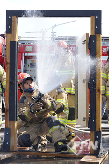 다른 곳에선 소방관들이 화재실 내부 진입 시 안전한지를 판단하고 진입이 어려우면 주수를 통해 내부 환경을 안정화하는 도어 엔트리 훈련이 한창이었다.