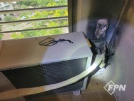 이날 거주자 A(남, 51)씨는 집에서 쉬는 중 타는 냄새를 맡고 실외기실을 확인하다가 화재를 목격했으며 가정 내 비치된 분말소화기를 사용해 자체 진화했다.