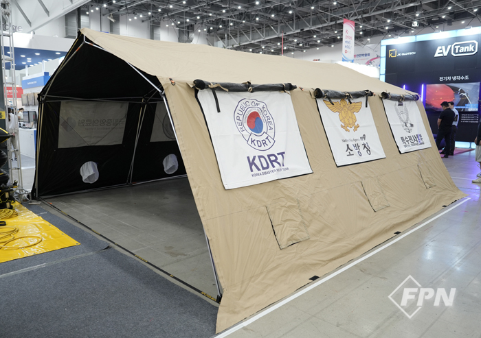 각 프레임과 외피는 일체형으로 제작됐다. 특히 프레임은 내구성을 높이기 위해 항공기 등급의 알루미늄을 채택했고 외피는 방염ㆍ방수 기능의 원단을 사용해 화염은 물론 비바람을 완벽히 차단해준다.