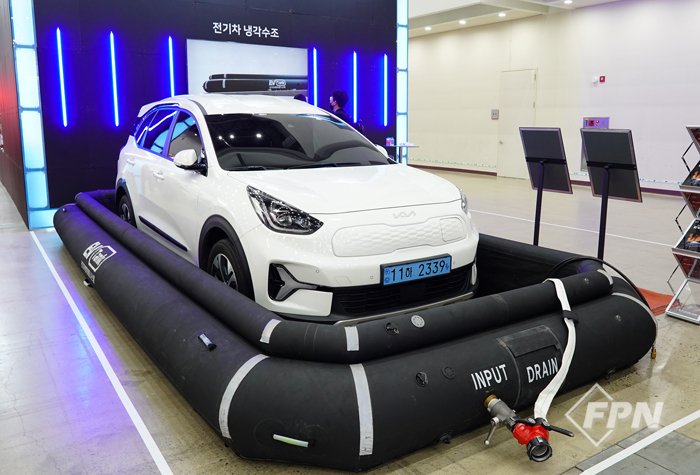 친환경 자동차 판매량이 증가하면서 전기차 화재진압에 관심이 쏠리는 가운데 (주)한국소방기구제작소(대표 정수환)는 전기차 화재진압 솔루션을 선보였다.