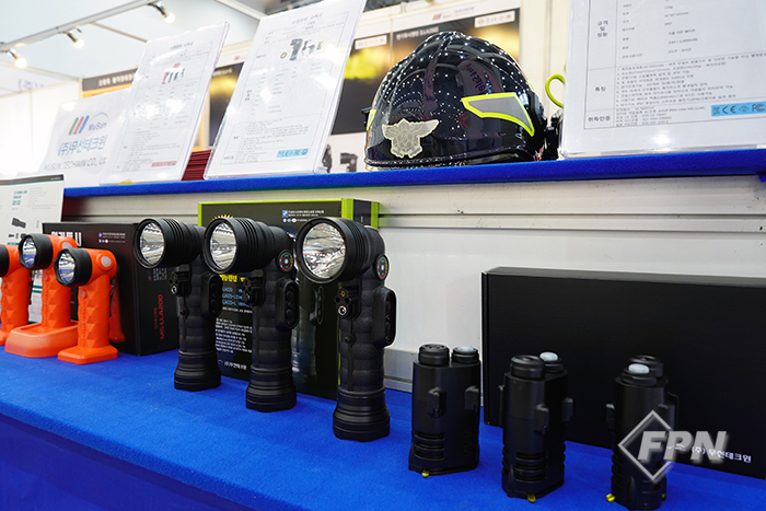 전장류 제품 전문기업 (주)무선테크윈(대표 이경감)은 재난 현장에서 사용하는 연기투시랜턴과 헬멧 랜턴을 선보였다.