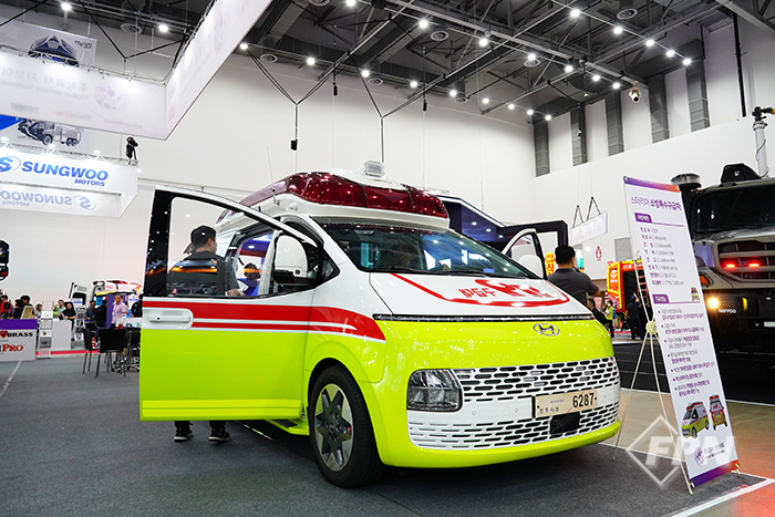 이번 박람회에서는 업체 최다 파워 LED를 적용한 구급차를 선보였다. 소방용 특수구급차 KFI인정을 획득한 이 구급차는 운전석ㆍ환자실 디스플레이에 구급차 최초로 8inch 중앙집중 터치식 디스플레이 컨트롤러와 터치ㆍ버튼식 스위치 컨트롤러를 적용했다.