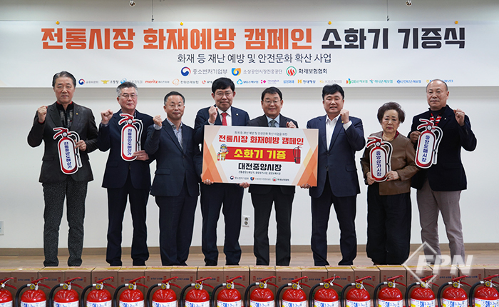 [FPN 최누리 기자] = 한국화재보험협회와 소상공인시장진흥공단이 대전 중앙시장에 소화기 180개를 기증했다.