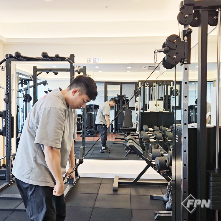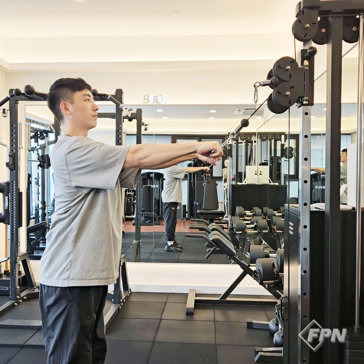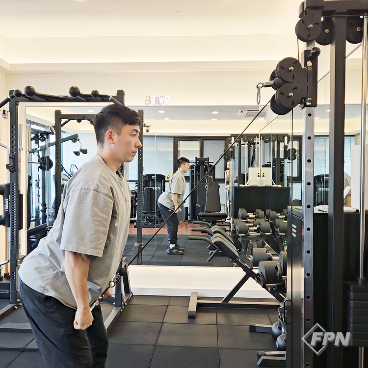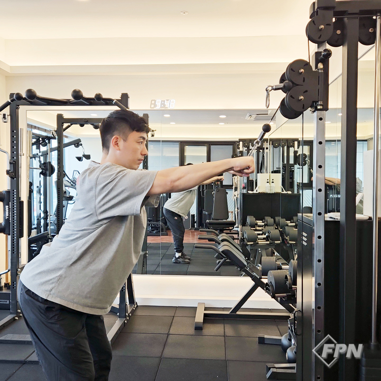 특성상 케이블을 잡고 뒤쪽으로 나와 있기 때문에 몸을 완전하게 펴서 암 풀 다운을 진행할 수도 있습니다. 하지만 그렇게 운동하면 아무래도 안정감 있게 몸을 유지하기 쉽지 않습니다. 따라서 반드시 벤트 오버 자세를 유지해 운동하는 걸 추천합니다.