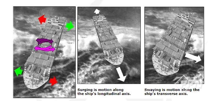 ▲ [그림 4] 컨테이너선의 롤링(Rolling, 출처 CTR HB TIS)