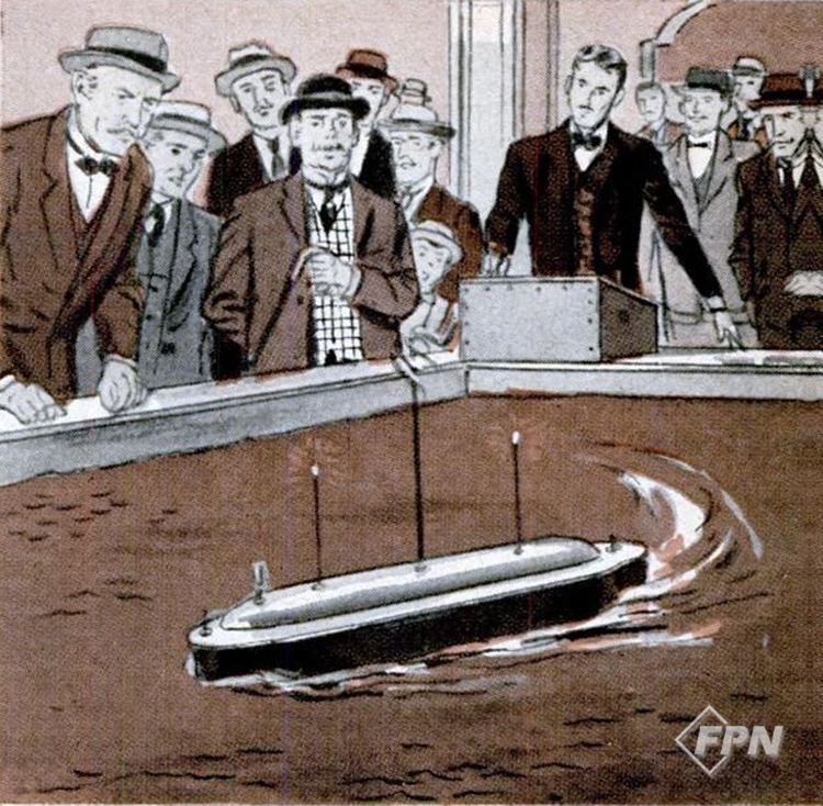 이후 1897년 전자기파를 통한 무인 운송 수단의 새 기술을 텔오토마틱스(Telautomatics)로 명명하고 연구에 몰두한 결과 1898년 개최된 매디슨 스퀘어 가든 전기박람회에서 1m 길이의 어뢰정인 텔오토마톤(Telautomaton)의 무선 조종 시연을 최초로 성공하면서 가능성을 실제로 증명했다.