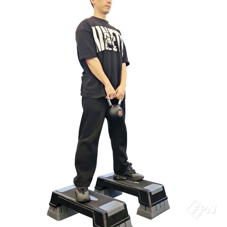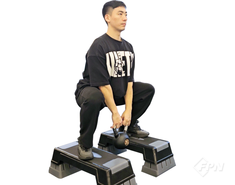 스텝박스와 케틀벨을 이용한 와이드 스쿼트 방법