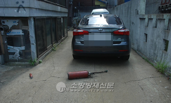| ▲ 폭발 충격으로 10여m를 날아가 버린 가압식 소화기 | |