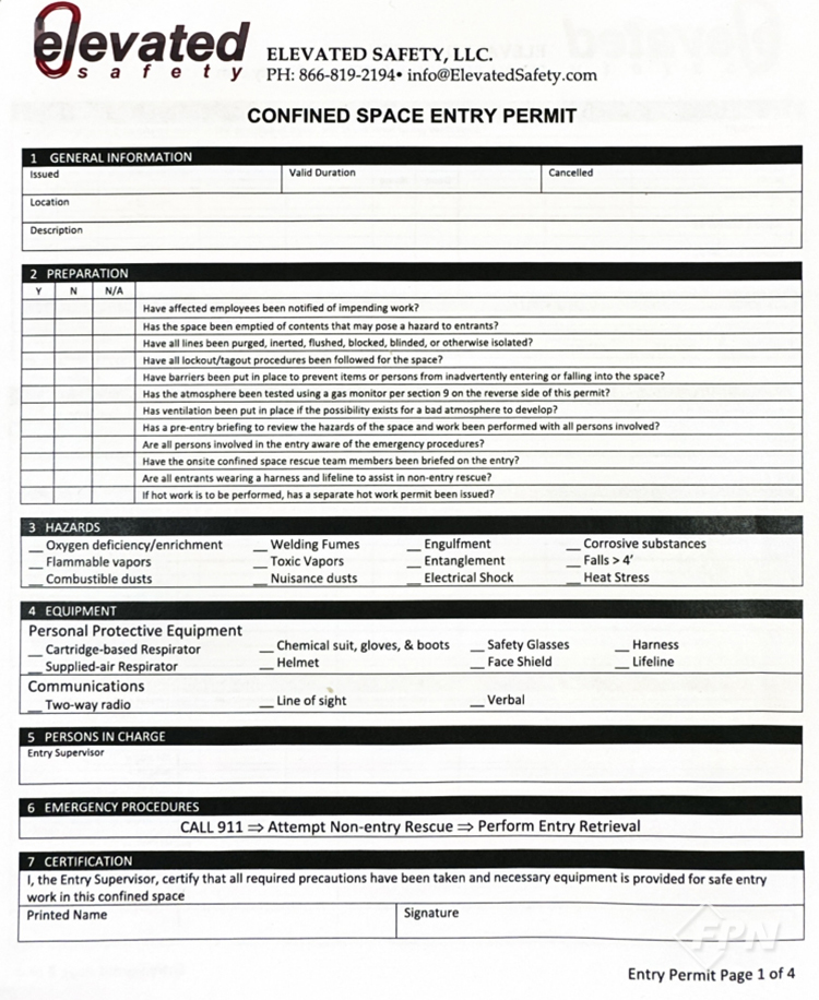밀폐공간 진입에 대한 여덟 가지 절차의 이해 1. 진입 허가