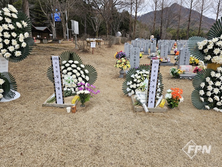 ![]() ▲ 영결식 이후 국립대전현충원 소방공무원 묘역에 나란히 안장된 고 김수광ㆍ박수훈 소방관 |