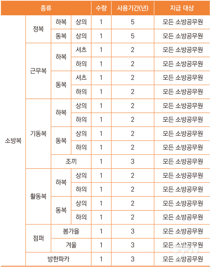 ![]() ▲ 모든 소방공무원은 복제 규칙에 따라 소방복을 지급받는다. |