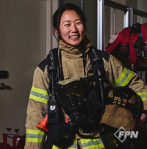 화재진압대에서는 현장대응단 2팀에서 근무하고 있는 강신애 대원이 촬영에 임했다. 강 대원은 인명구조사 2급과 화재대응능력 2급 자격을 보유하고 있다.