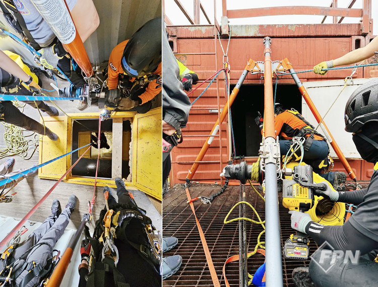 이번 훈련은 다양한 환경을 대비해 진행됐다. 앞서 배운 대로 진입 전 여덟 가지 절차를 준수해 허가서와 전기차단(LOTO), 위험요소 측정, 환기 등의 절차 후 구조훈련을 진행했다.