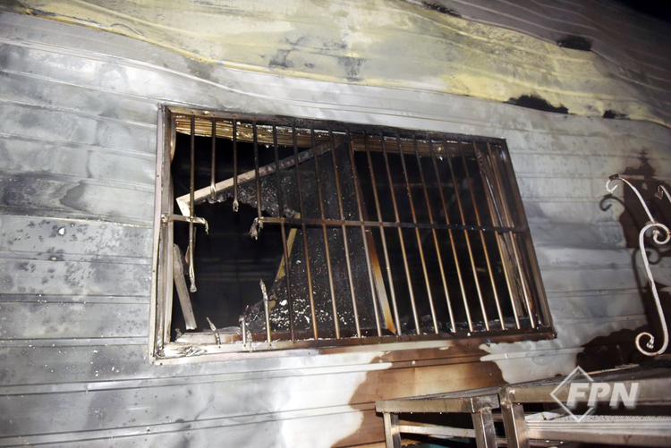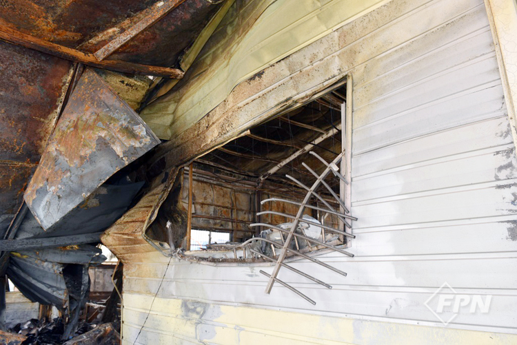 화재 건물 측면이다. 언뜻 보기엔 하단보다 상단에서 많은 소훼 형태가 관찰된다. 내부가 이중 구획돼 있어 외부에서는 연소 형태가 관찰되지 않았다.