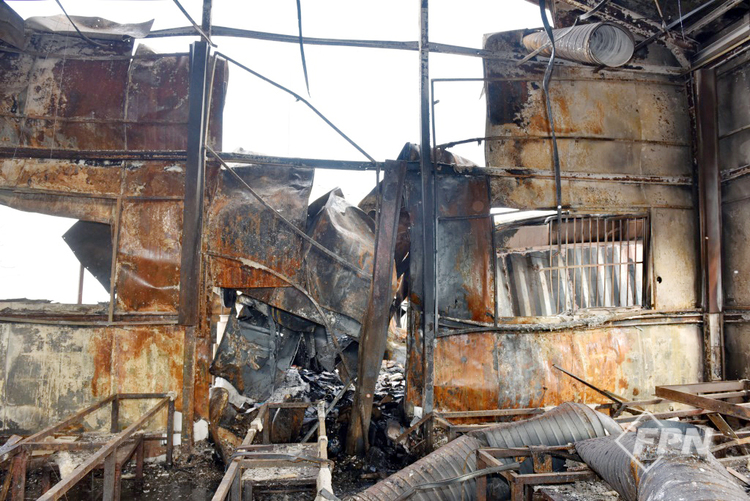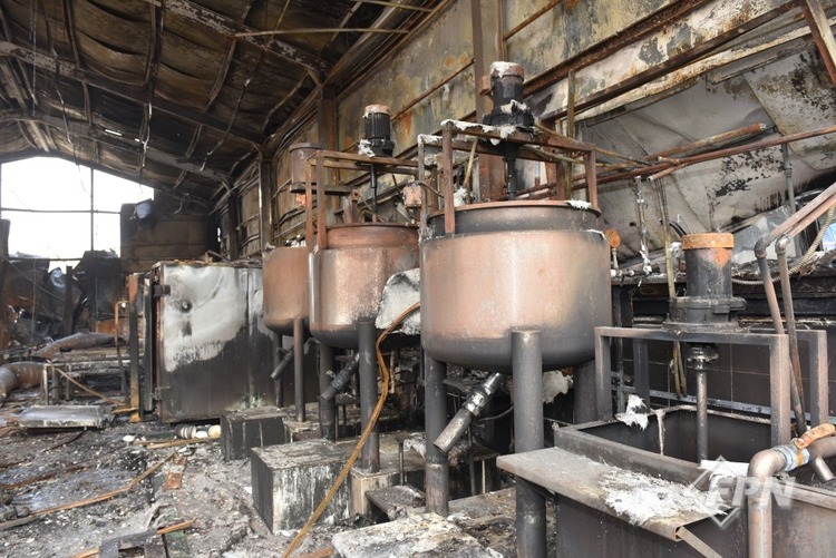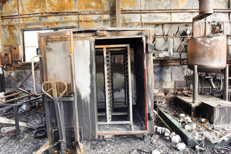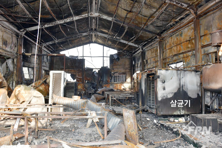 공장 내부 살균기에 위에서 아래로 수열 받은 흔적이 잔류했다. 살균기 하단은 원형으로 탄화나 화염전파 형태가 관찰되지 않는다. 살균기 상단 벽면에도 다른 부분과 달리 적 산화 현상이 확연하게 잔류했다.
