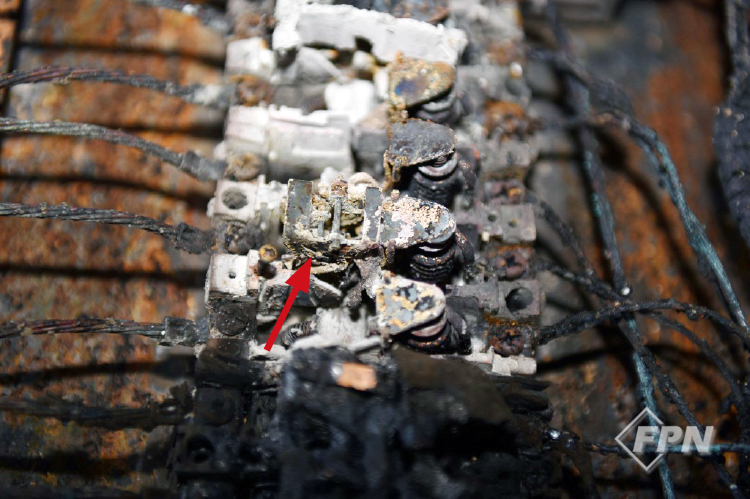차단기는 전체적으로 소훼돼 철재만 잔류했다. 차단기 걸림쇠는 중간에 위치해 경화된 형태로 변형 없이 잔류했다.