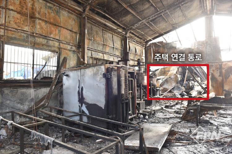 공장 내부 소훼 상태는 주택 방향이 심하게 연소한 형태로 잔류했다. 관계자 최 씨는 주택에서 TV를 시청하고 있었고 화재를 인지하지 못했다. 그렇다면 묵 솥이 있는 지점은 발화지점이 아닐 가능성이 크다.