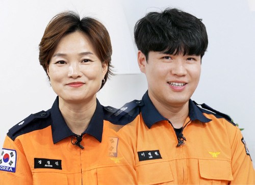 <119플러스>가 때로는 동화구연사처럼, 때로는 노량진 일타강사처럼 알기 쉽고 재밌게 재난안전대처요령을 알려주는 정경진 서울 보라매안전체험관 소방위, 이태원 충북안전체험관 소방교를 만났다.