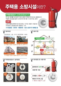 주택용 소방시설은 초기 화재 진화에 유용한 소화기와 자체적으로 화재를 감지해 경보음을 울려 신속하게 대피할 수 있도록 유도하는 단독경보형감지기를 말한다.