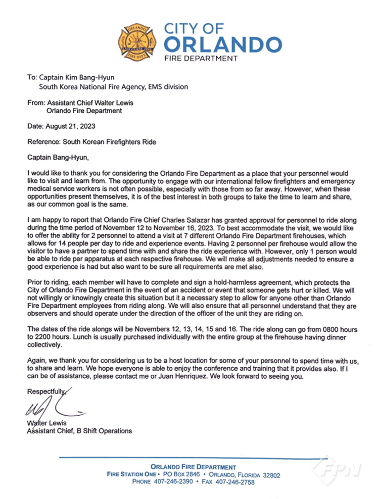 OFD(올랜도 소방국) 동승 실습 올랜도 소방서는 ‘Orlando City’ 소속으로 1885년 개서 이후 현재 17개의 Station(우리나라의 안전센터)에서 약 519명이 근무한다. 담당 지역 특성에 따라 특수차들이 배치돼 있다.