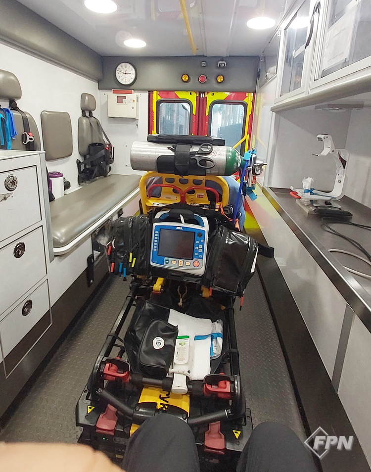 ▲ 구급차에 실려 있는 다양한 장비 모든 구급차는 스트라이커 사의 ‘Power PRO-XPS’ 전동 들것을 사용하고 있었다. 기본적으로 모든 차량에는 화재진압 개인장비가 적재돼 있었다. 마약중독 환자와 총기사고를 대비한 날록손, 방탄복이 눈에 띄었다.