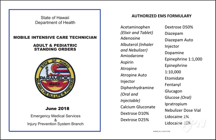 지역마다 구급 업무의 프로토콜이 있고 특성에 따라 약물사용법과 치료 범위에 대해 지역 지도의사와 병원, 소방이 협의해서 운영하고 있었다. 자격별 업무 범위는 주(State)마다 성인과 소아에 대한 Standing Orders(표준지침)에 따른다.