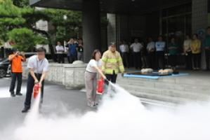 이번 훈련은 공공기관에서 화재가 발생했을 때 소방력이 투입되기 전 기관 직원들이 소화기 등 소방시설로 초기 진화하고 직원ㆍ시민들이 대피할 수 있도록 교육하고자 추진됐다.