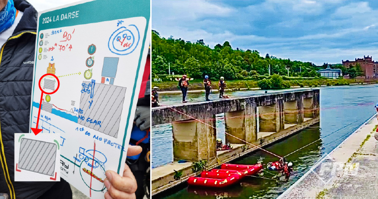 Day 3의 세 번째이자 대회 마지막 미션은 LA DASE라는 뫼즈강의 특이한 장소에서 실시했다. 미션 카드와 구조장면을 보면 왼쪽(위험지역) 콘크리트 구조물 하단의 구조대상자를 직상부로 인양한 후 오른쪽(안전지역)으로 구조해야 했다.