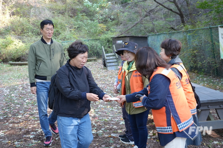 의용소방대는 등산객들에게 산림화재 예방 안내문을 배부하며 화재에 대한 경각심을 가질 것을 당부했다.