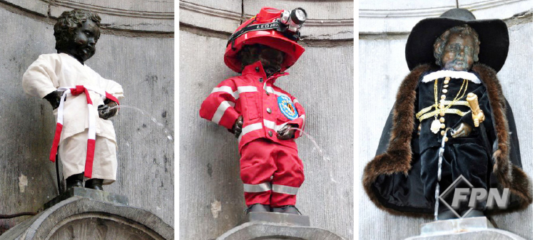 브뤼셀을 상징하는 랜드마크 중 하나인 작은 오줌싸개 소년(Manneken Pis) 동상은 1619년에 만들어졌다. 이 동상엔 유머러스한 역사적 배경이 있다. 높이는 약 61㎝로 그리 크지 않지만 매년 수많은 관광객이 동상을 보기 위해 모인다.