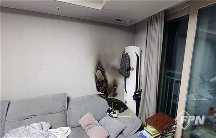 소방은 거실 소파에서 보조배터리를 충전하던 중 불이 난 거로 추정하고 있다.