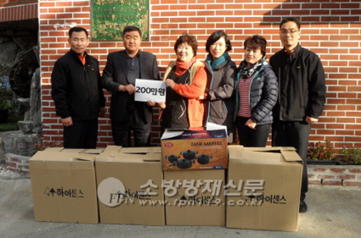 부산 사하소방서(서장 전재구) 강태구, 김경희 남․여성의용소방대장은 겨울철 맞아 지난 11월 27일 오후 3시경 감천동 589번지 사회복지법인 애아원을 찾아 경제적 어려움에 살아가고 있는 관내 고아원 아동에 대한 냄비, 후라이펜 등 200만원 상당의 물품을 전달했다. 사하소방서 강태구 남성의용소방대장은 "조그마한 물품 전달을 통한 소중한 119사랑 나눔이 우리 사회를 더욱 아름답고 행복하게 만드는 결실로 이어지길 바란다"고 말했다.