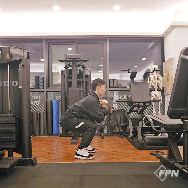 흉추의 유연성이 떨어지거나 스쿼트할 때 상체가 앞으로 쏟아지는 분들 또한 가슴 앞쪽에 중량을 잡은 후 균형을 잡는다면 보다 안정적으로 스쿼트를 할 수 있습니다.