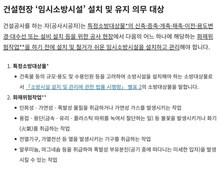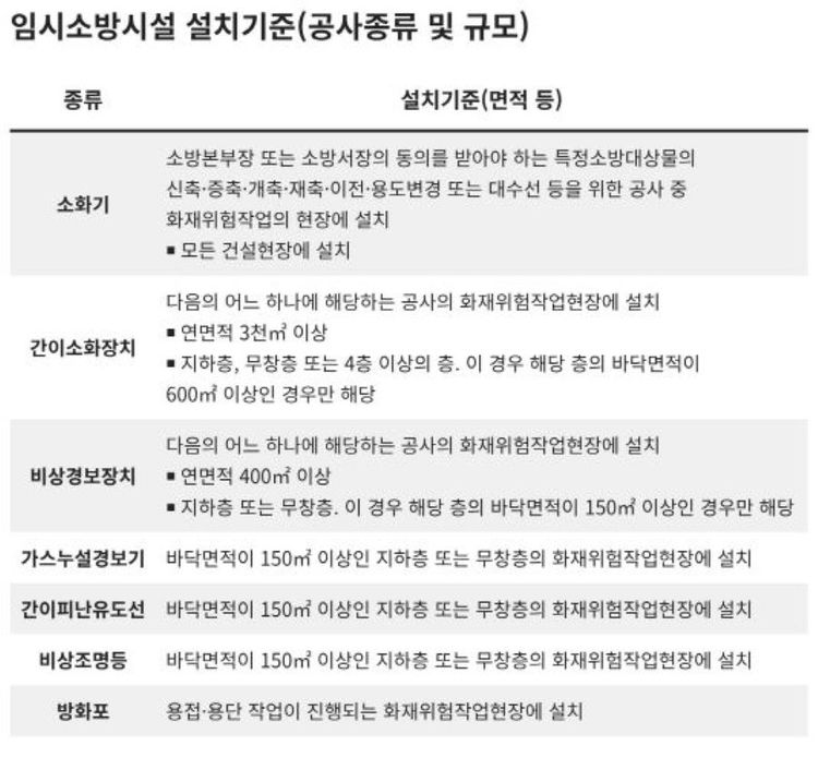 [119기고] 건설현장 임시소방시설 의무 설치 대상과 설치 기준