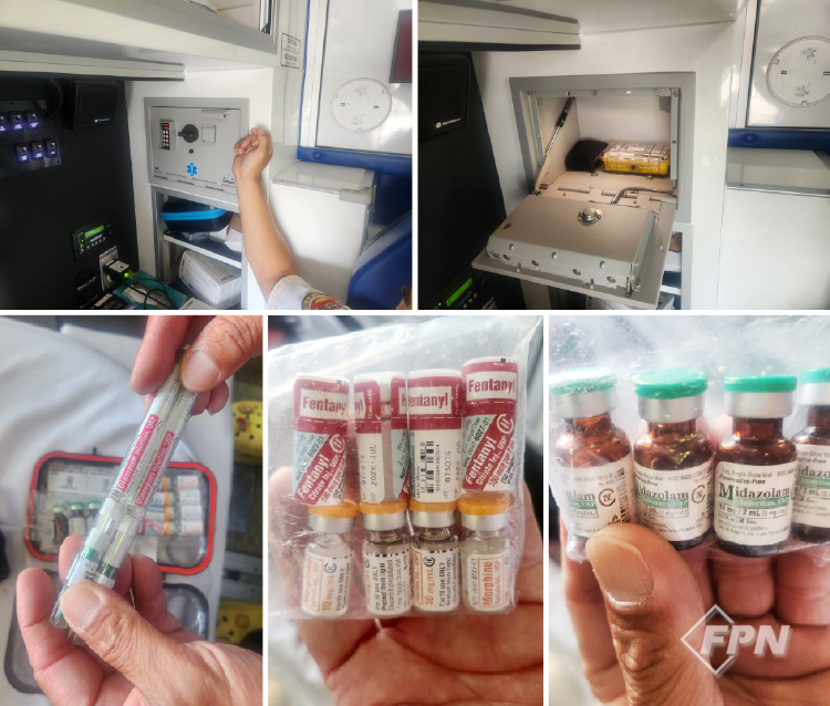 상기 4종의 약물은 파라메딕 본인의 고유 비밀번호를 입력해야 열 수 있는 금고에 비치돼 있었다. 특이한 점으로는 약물 사용에 대한 지시를 소속 의료지도 의사에게 받는 게 아니라 환자를 이송할 병원의 의사에게 받는다는 점이다.