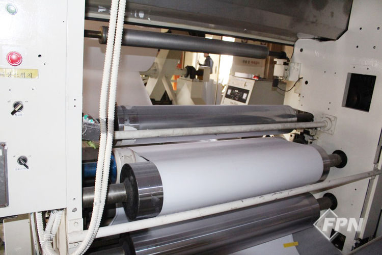종이와 코팅지 접합 후 스티커 제작 전 공정으로 마찰하는 부분에 정전기 방지설비가 설치돼 있는 게 확인된다. 대부분 설비에 모두 정전기 방지설비가 돼 있다.