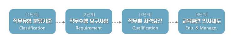 요구사항엔 직무별 구체적 특성과 성과 목표 등이 포함돼야 한다. 3단계는 ‘직무별 자격요건 정립’이다. 직무기술서에 따른 자격ㆍ능력ㆍ경험 등을 구체화해 기준을 마련하는 단계다. 4단계는 ‘교육ㆍ훈련, 인사제도 연계’다. 직무를 교육ㆍ훈련, 인사제도 등과 연계해 전문성을 높이는 걸 목표로 삼는다.