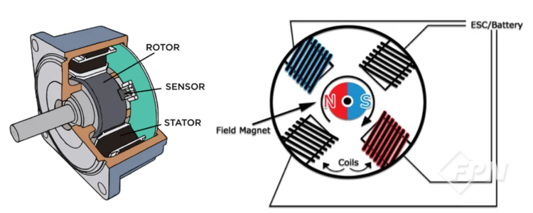 먼저 전기 모터는 현대 드론의 추진력을 제공하는 핵심 부품 중 하나다. 엔진이 휘발유, 디젤 등의 연료를 기반으로 동력을 제공한다면 전기 모터는 전류를 통한 전자기 유도 법칙의 원리를 기반으로 동력을 제공한다.