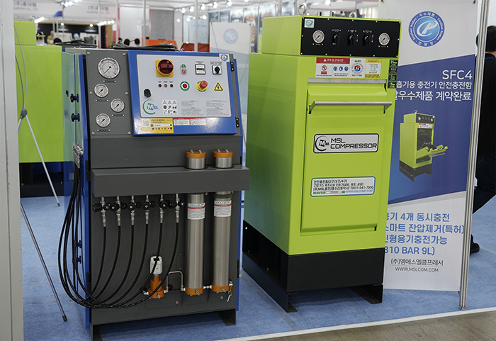 ‘M10X’와 연동해 사용할 수 있는 안전충전함도 관심을 끌었다. 엠에스엘 콤프레서의 안전충전함은 작은 공간에도 설치할 수 있도록 작은 크기로 설계돼 공간적인 여유가 녹록지 않은 소방관서 등에 안성맞춤이라는 게 엠에스엘 콤프레서 설명이다.