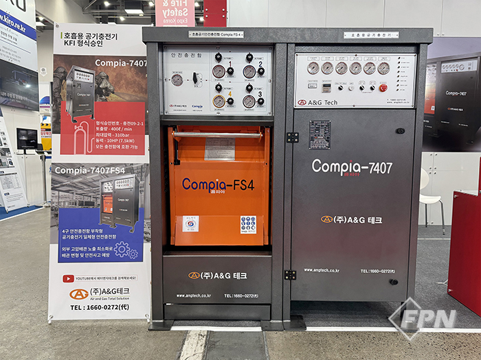 2~4구용 안전충전함을 제조ㆍ유통해 온 A&G테크는 이번 박람회에서 공기호흡용기 충전기와 안전충전함 기능을 일체형으로 설계한 장비를 선보였다.