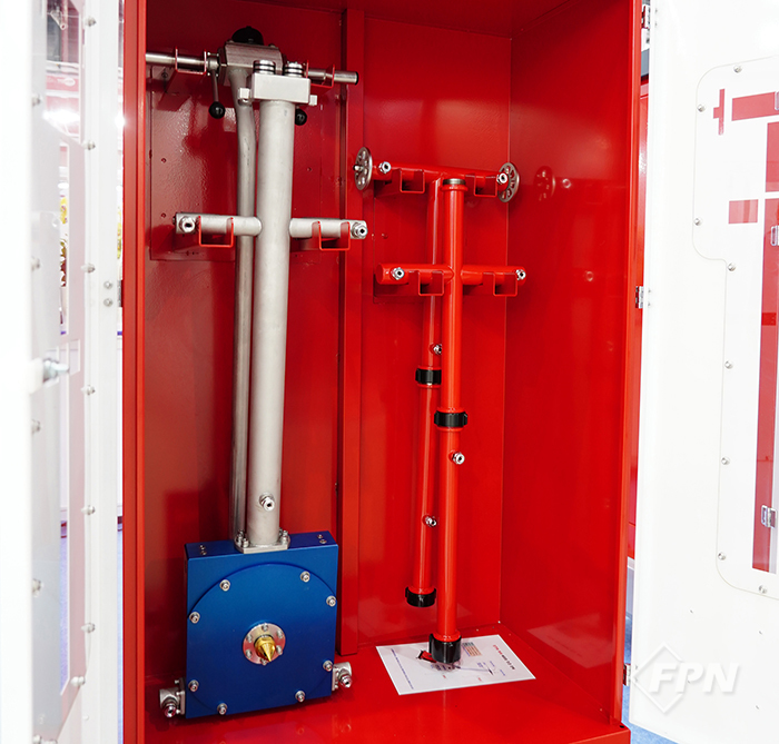 1인 1조로 운영되는 현장 여건을 고려해 작업대에 장착된 보조 스텝은 전동식으로 제작했다. 무선 리모컨만으로도 아웃트리거와 카메라 영상(열화상 포함)을 조작ㆍ확인할 수 있는 신기술이 접목됐다는 점도 특징이다.
