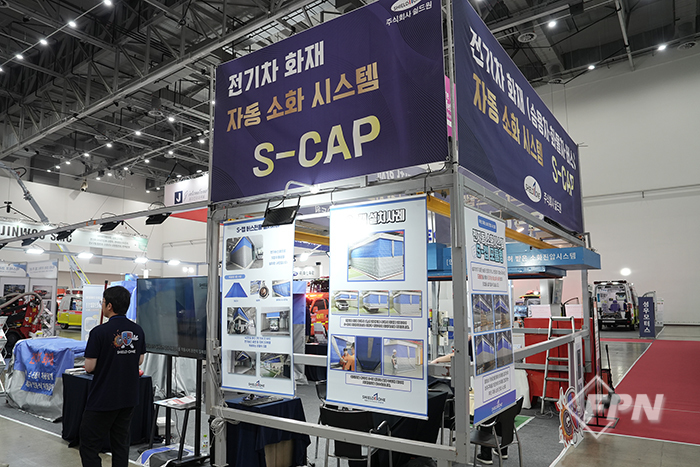 (주)쉴드원(대표 이승희)은 화재 방지ㆍ진압 장치를 개발ㆍ생산하는 전문기업이다. 이번 박람회에선 층고가 높거나 천장이 없는 공간에 설치가 가능한 화재 확산 방지 시스템 ‘S-CAP’을 참관객에게 소개했다.