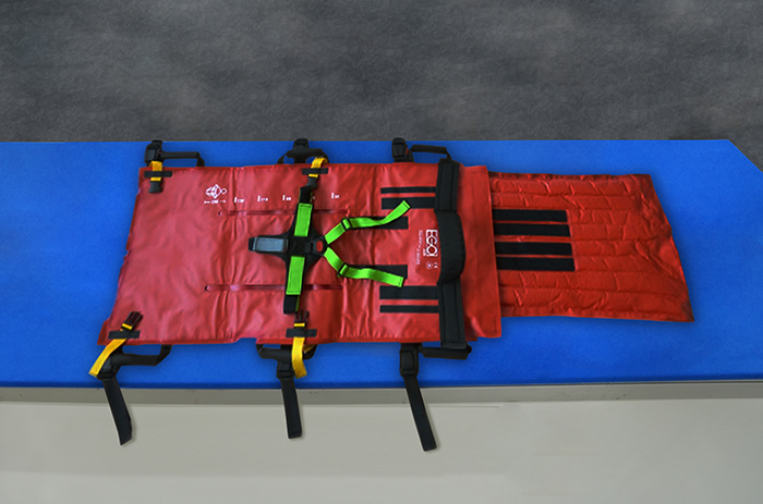 이 제품은 몸무게 22㎏, 키 130㎝ 이하 환자 이송에 최적화된 들것이다. 보관용 가방에 동봉된 펌프로 진공매트에 공기를 주입해 환자를 밀착 고정하는 방식이다.