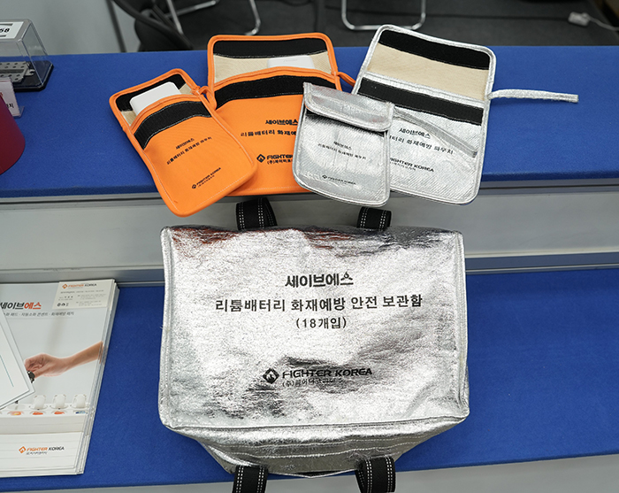 이 제품들은 UL-94 V-0등급의 불연 원단과 특허 기반 소화기술로 배터리 열폭주 시 화염과 열의 외부 누출을 차단하는 게 특징이다. 파이터코리아가 론칭한 리튬이온 배터리 화재 예방 보관 솔루션 전문 브랜드 ‘세이브에스’로 출시됐다.