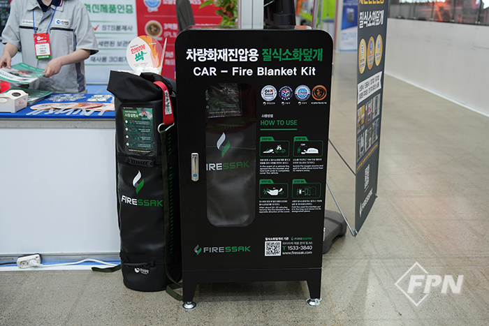 (주)라지(대표 박철현)는 내연기관차는 물론 전기차의 특성까지 고려해 설계한 질식소화덮개 ‘파이어싹’을 선보였다.
