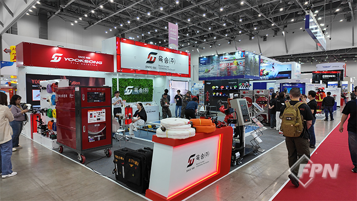 소방용품과 장비를 전문적으로 제조하는 육송(주)(대표 박세훈)는 박람회에서 전기차 화재확산방지 시스템과 회전형 옥외소화전, 비상소화장치, 옥내소화전 호스릴, 이동식 간이소화장치 등 다양한 기술을 선보여 이목을 끌었다.