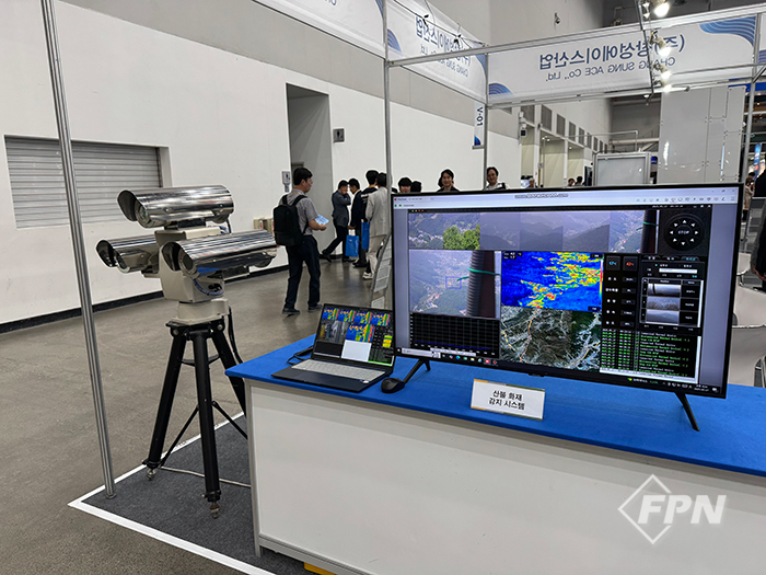 특수 소방 시스템을 전문으로 생산하는 (주)창성에이스산업(대표 이의용)은 이번 박람회에서 인공지능(AI)을 활용해 실시간으로 산불을 탐지하는 ‘복합 영상 기반 화재감지시스템’을 참관객에게 소개했다.