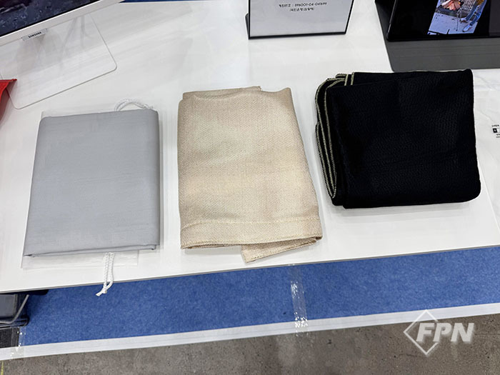 대승산업은 이번 박람회에서 골드론 파이어컷을 활용한 휴대용 보조배터리 파우치도 소개했다. 브라운, 딥 그린 등의 색상을 적용했고 화염과 연기가 밖으로 새어 나오지 못하도록 금속 잠금장치도 탑재했다.